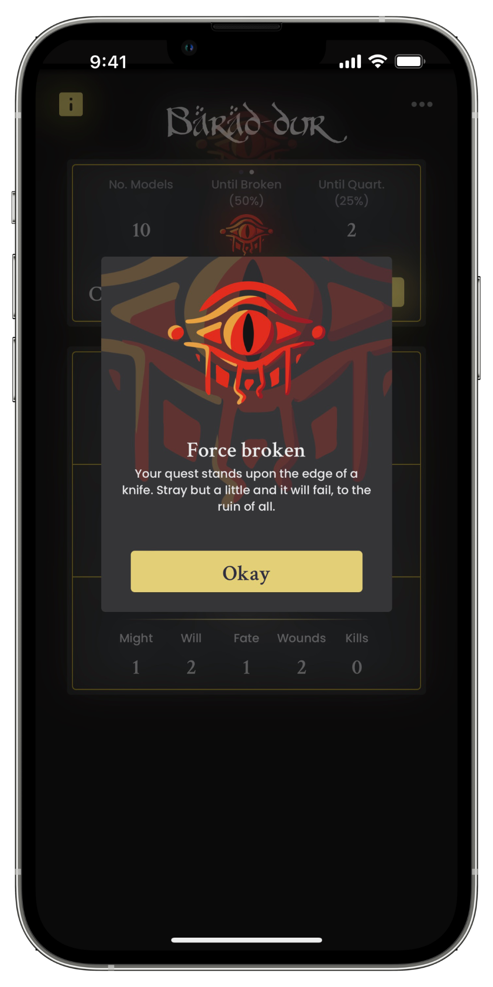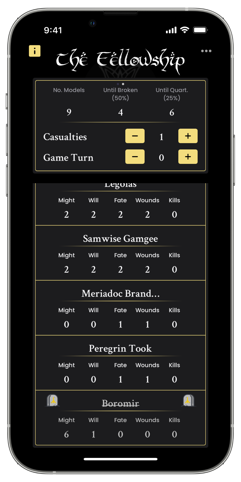 Sick of having to use pen/paper and dice to keep track of your heroes’ Might, Will, Fate, Wounds and Kills, in addition to also having to work out and monitor your break point and quartered values?